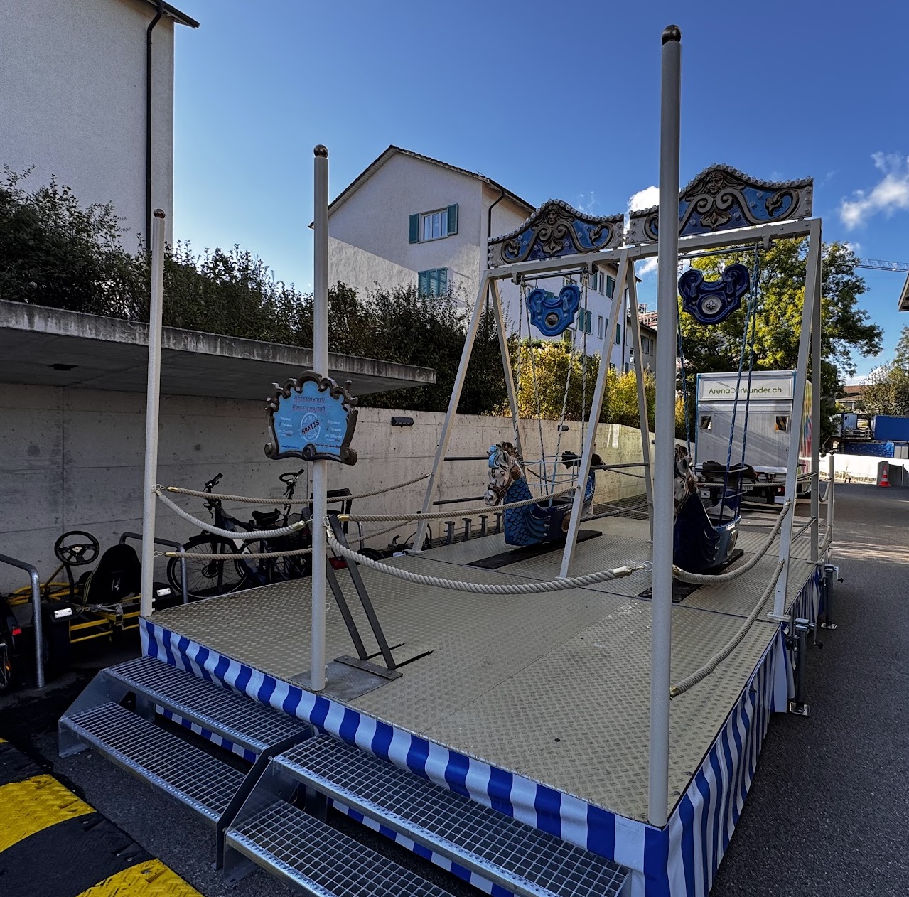Nostalgie pur mit unserer sehr schönen, einmaligen Seepferdchen Schiffschaukel Ariel mit 2 Schiffen. Ideal für die Kleinen und auch Grossen. Wie auf dem richtigen Jahrmarkt, darf diese nostalgische Attraktion nicht fehlen!