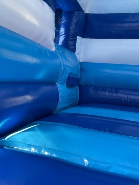 Lieferumfang: Hüpfburg, Fallschutzmatten, Gebläse, Unterlegplane, Kabelrolle, Sicherungsmaterial, Auf- & Abbauanleitung.