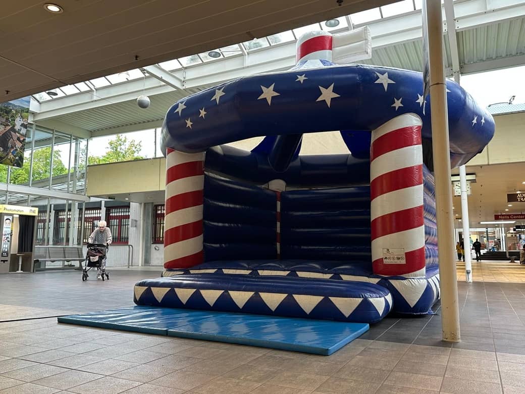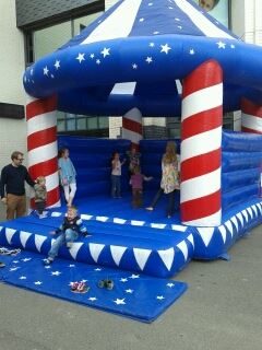 Unsere hauseigene Zirkus Hüpfburg bietet Platz für bis zu 10 Kinder oder 5 Erwachsene. Diese Hüpfburg bietet ein Dach zum Schutz vor Regen und zu hoher Sonneneinstrahlung.