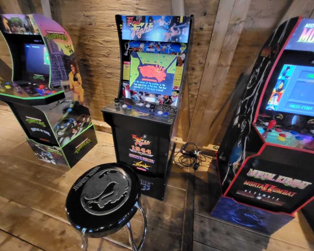 Die bekannten Themen sind: Pac Man, Galaga, Final Fight 2 Player, Ninja Turtles 4 Player, Street Fighter 2 Player, Time Crisis, Fast and Furious, Ridge Racer, NBA Jam Basketball 4 Player, Misses PacMan, Mortal Combat 2 Player, Asteroids 2 Player, Rampage 3 Player.
