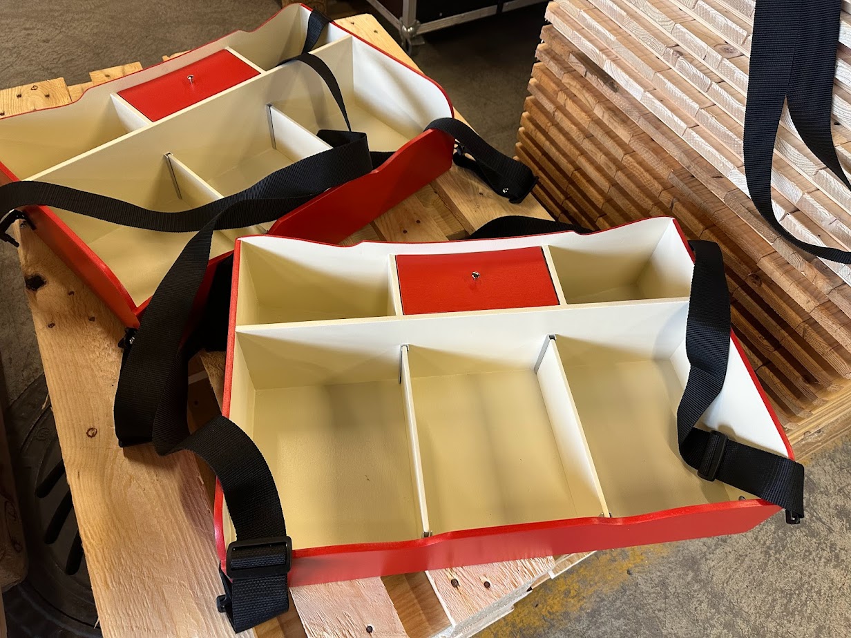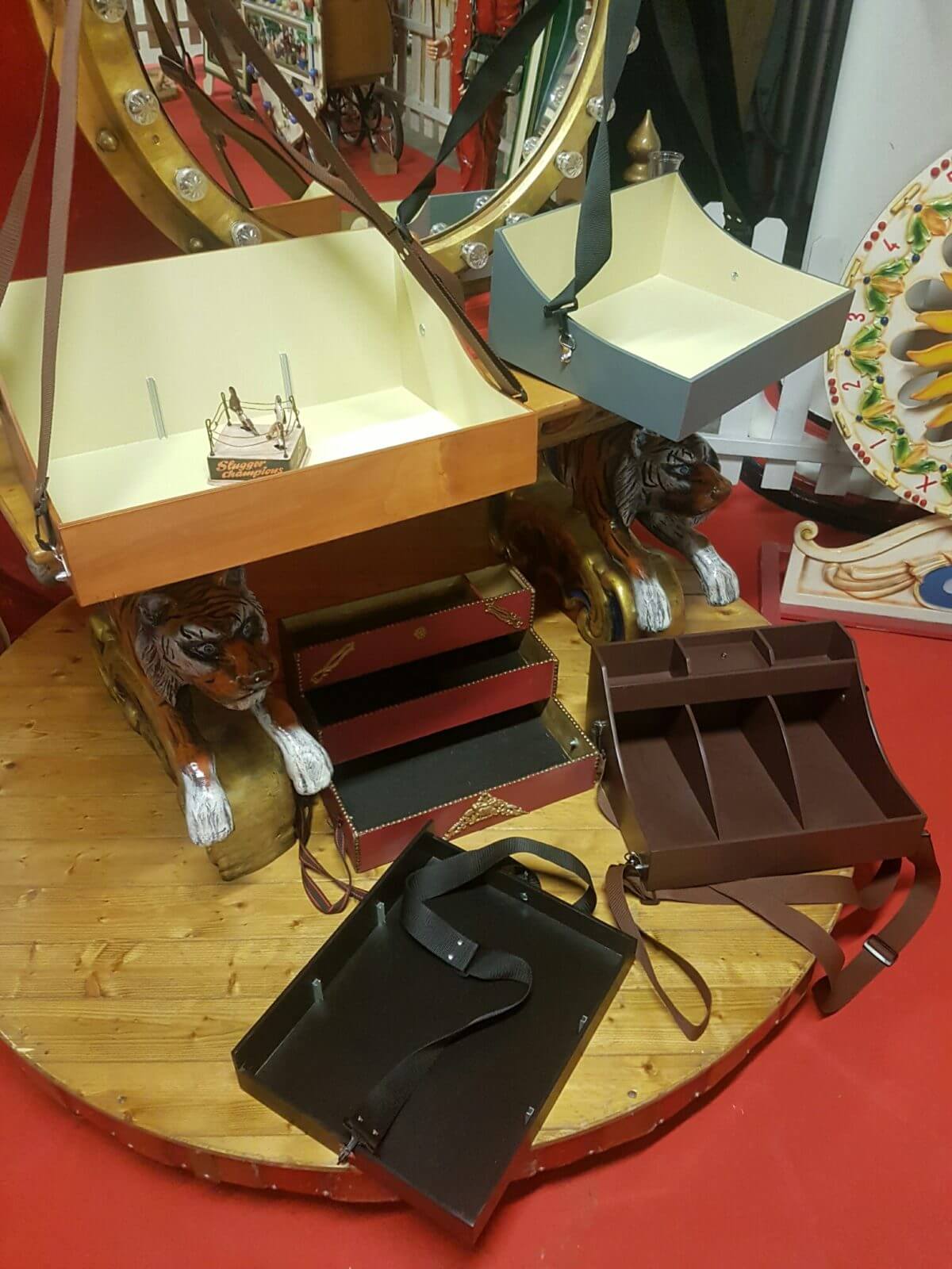 Lieferumfang: Bauchladen mit Trageriemen und gegebenenfalls Fächer oder Unterteilungen.