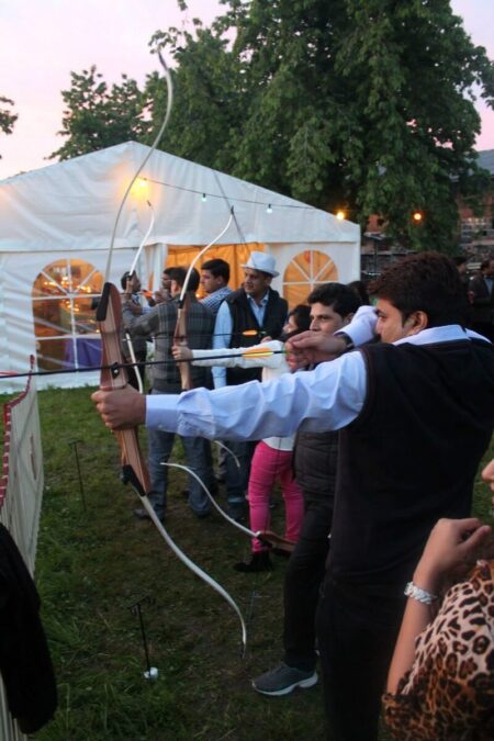 Wir bieten Ihnen 2 – 6 Ziele mit bis zu 12 professionellen Sportbögen an. Je nach Platz bringen wir ausreichend Absperrmaterial, Fangnetze und alles Zubehör mit.