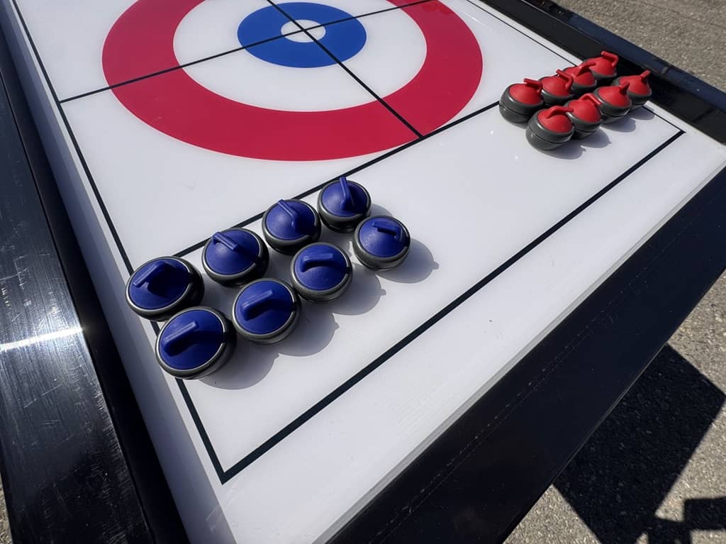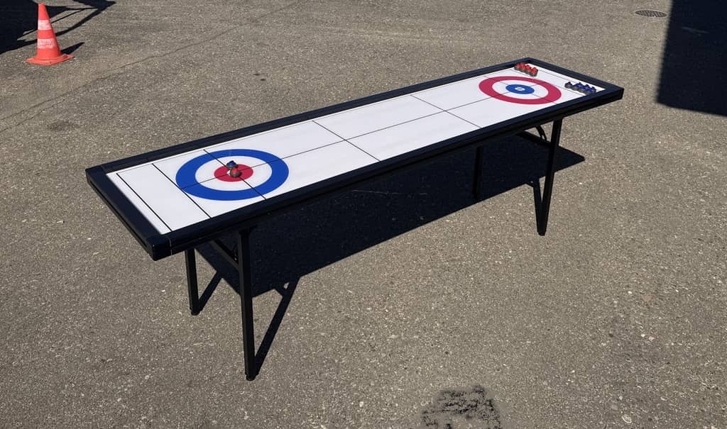 Lieferumfang: Klappbarer Tischfuss, Platte zum auflegen, Spielsteine.
