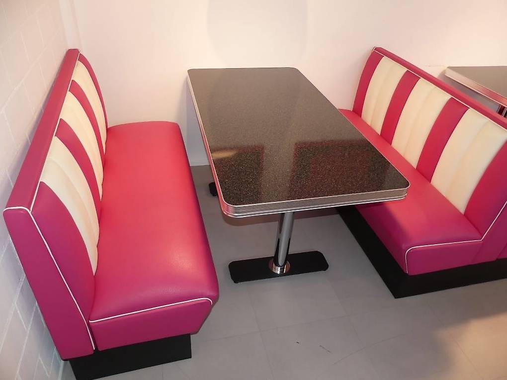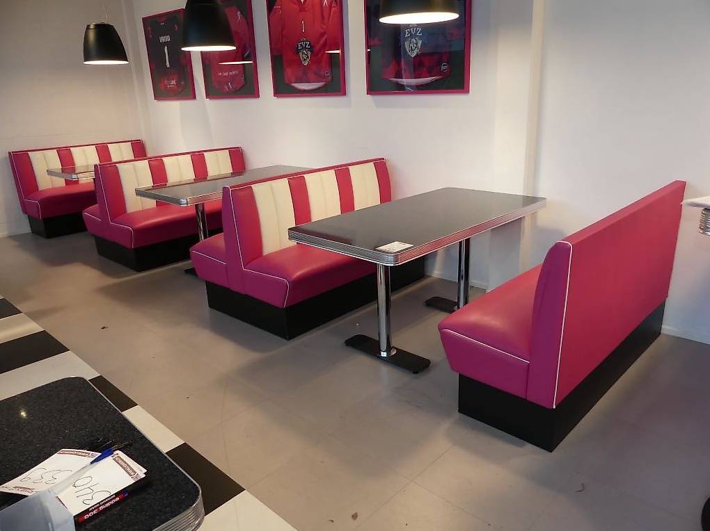 Der Retro-Designklassiker aus den 50er/60er Jahren in Pink-Weiss. Diese coolen Bänke aus Kunststoff in leuchtendem Pink bringen den Diner-Look direkt auf Ihr Event.