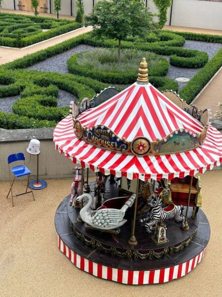 Unser nostalgisches Dampfkarussell Lafayette anno 1900 bietet Platz für bis zu 12 Kinder pro Fahrt.
