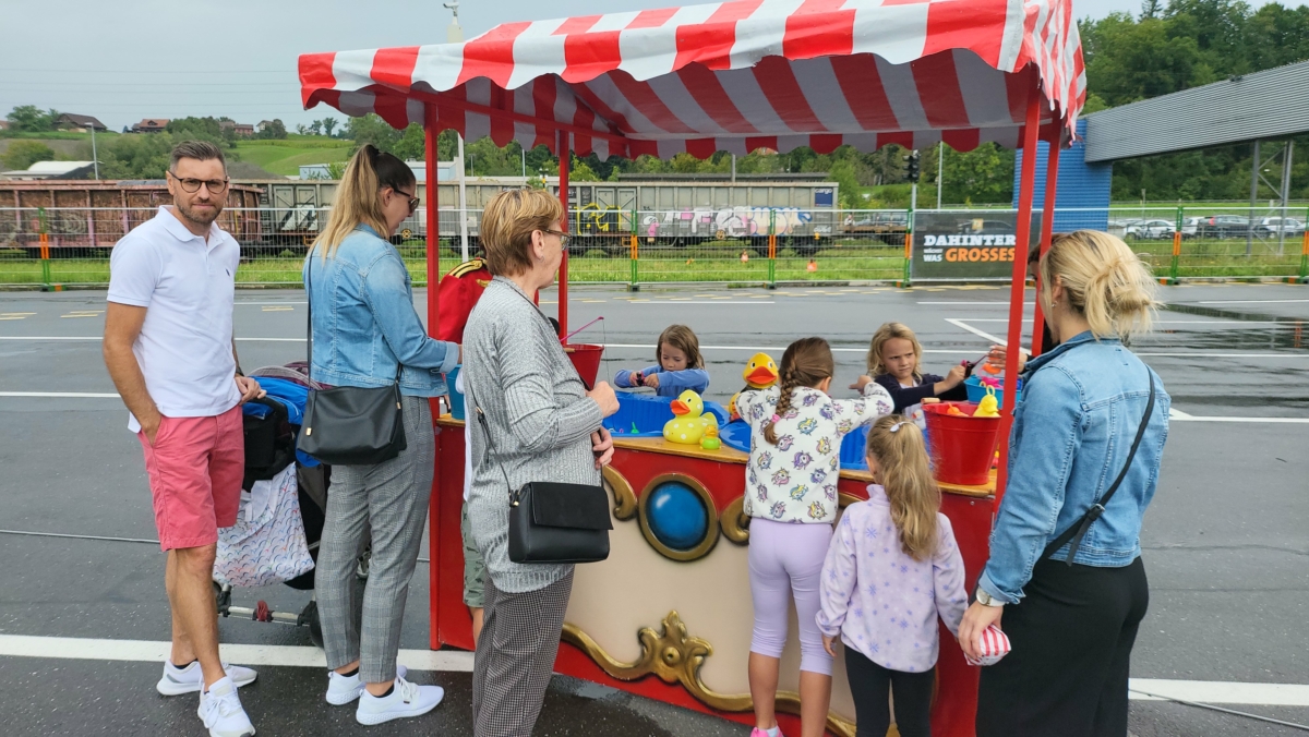 Lieferumfang: Marktstand, Entenangeln Einsatz, Angeln, Enten, Wasser.