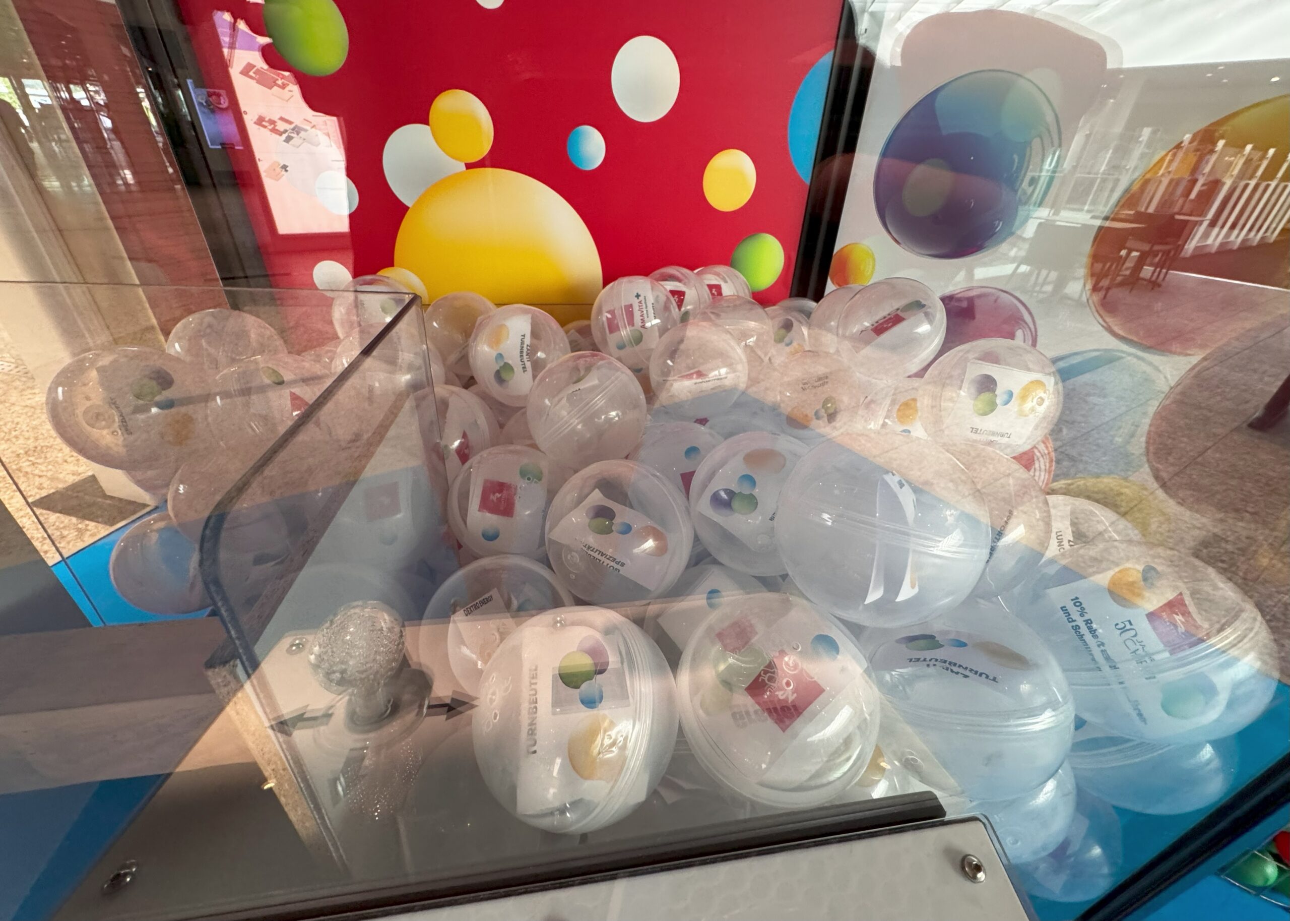 Um den Greifautomat mit verschiedensten Giveaways befüllen zu können, bieten wir passende Klarsicht Kapseln mit einem Durchmesser von 90 – 100 mm an, in denen Sie Ihre Werbegeschenke oder Artikel unterbringen können.