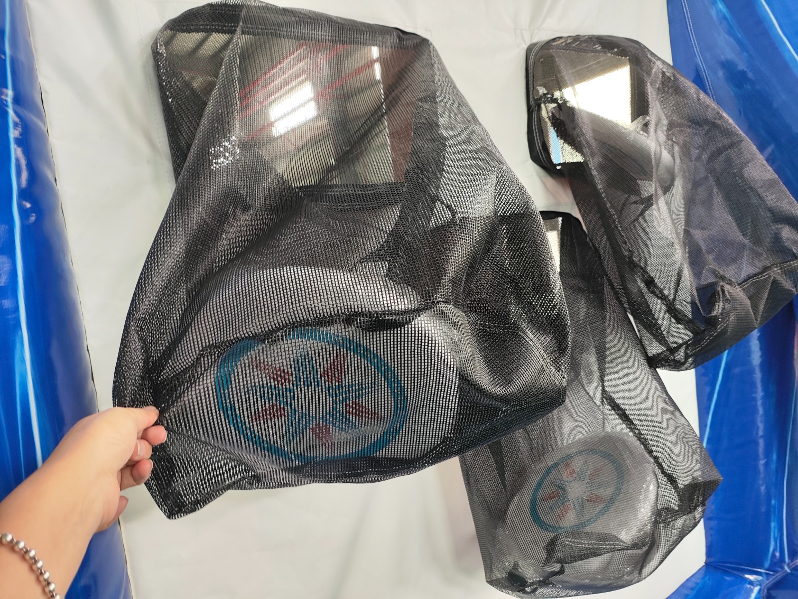Lieferumfang: Spielgerät aufblasbar,Frisbees, Bälle, Gebläse, Unterlegplane, Kabelrolle, Sicherungsmaterial, Auf-/Abbauanleitung.