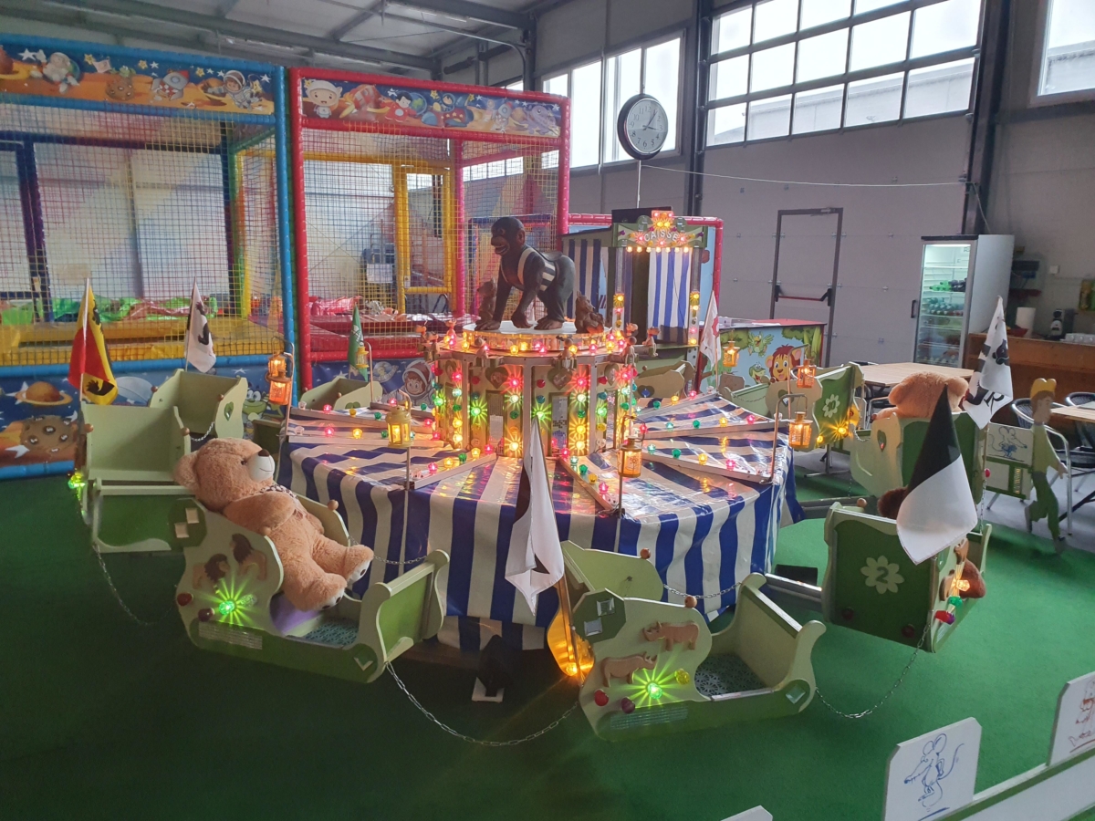 Hier bieten wir Ihnen ein einmaliges Karussell, welches so nur 1 mal gebaut wurde. Wie die grosse Himalaya Bahn, auch Berg und Talbahn genannt, geht es hier rasant bergauf und bergab. Auch dreht sich dieses Karussell rückwärts. Aber keine Angst: Diese Bahn wurde extra für Kinder gebaut und entsprechend die Geschwindigkeit angepasst!