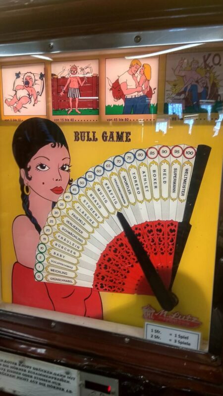 Der Spielautomat, welcher wie ein Boxautomat aufgebaut ist, misst nach Einwurf des Jetons, Münze oder Freispiel die Stärke des Spielers.