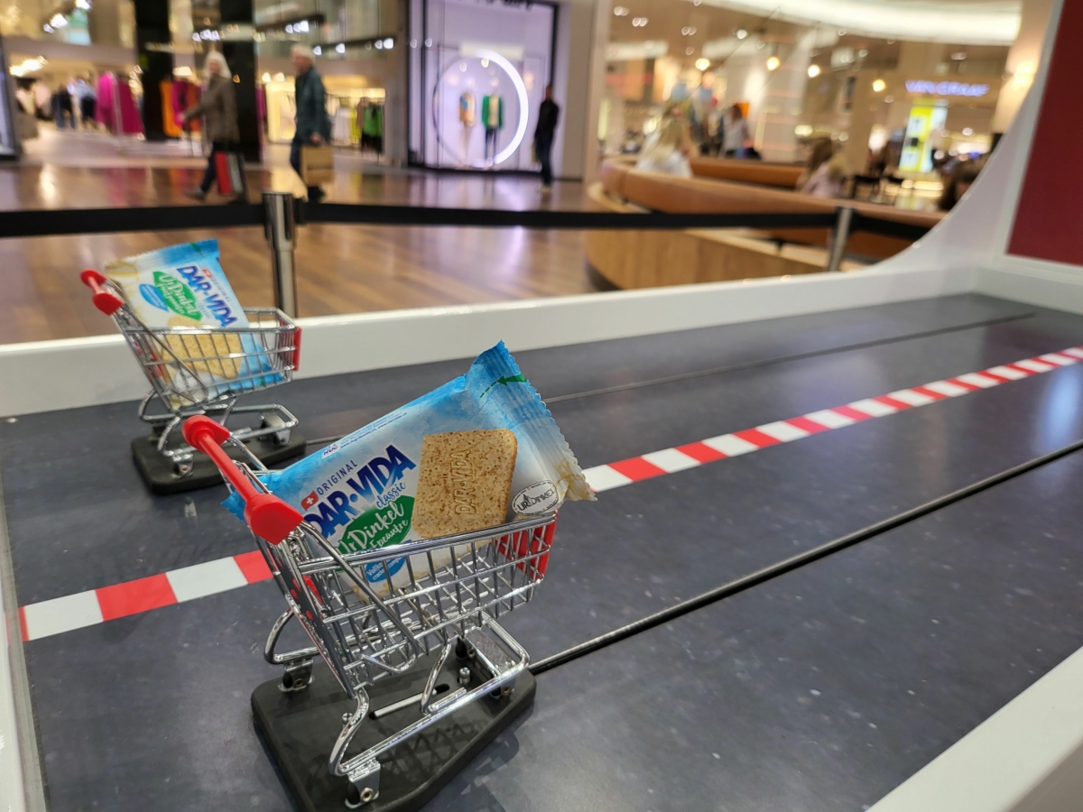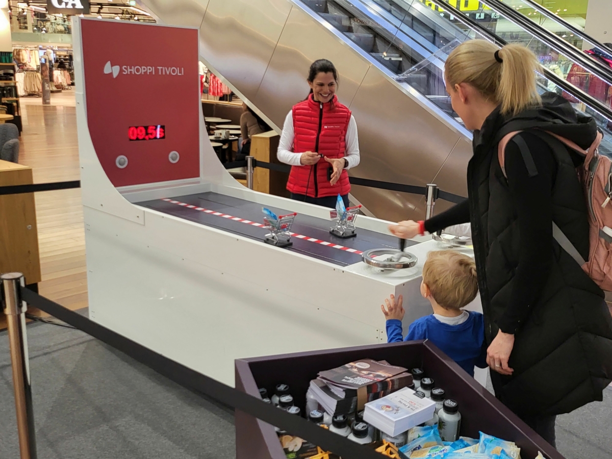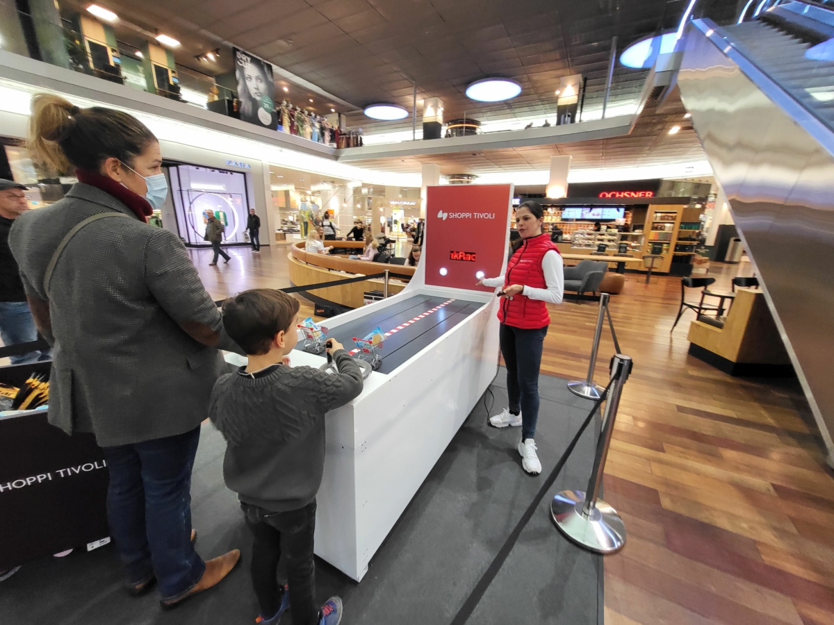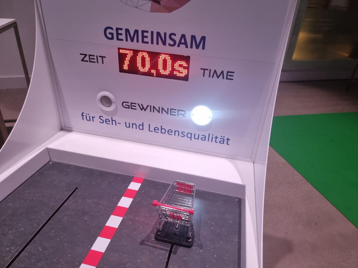 Die Einkaufswagen können mit einem Direktgewinn bestückt werden. Anstelle mit Einkaufswagen kann das Kurbel-Rennspiel auch mit anderen Aufsätzen gespielt werden. So können Sie beispielsweise Ihr Logo oder eines Ihrer Produkte über die Rennstrecke kurbeln lassen.