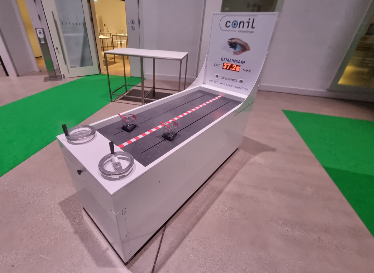 Unser exklusiver Schnelldreher-Wettbewerb als Kurbel-Rennspiel oder auch Crank-Game ist eine Spezialanfertigung, die Sie momentan nur bei uns mieten können. Nach dem Motto »Ich dreh‘ am Rad» gilt es, die Miniatur-Einkaufswagen mit der Kurbel so schnell wie möglich ins Ziel zu befördern. Wer am schnellsten dreht, gewinnt! Dabei sind Kraft, Ausdauer und die beste Technik gefragt.