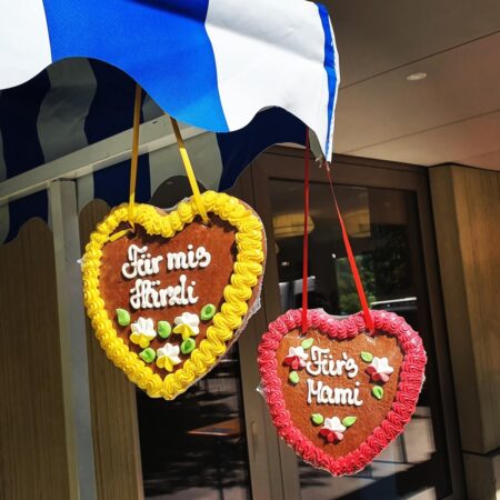 Auf keinem Oktoberfest darf das richtige Lebkuchenherz fehlen. Wir bieten Ihnen hier unsere ca. 16 cm grossen Lebkuchenherzen an mit verschiedenen Sprüchen in Mundart.