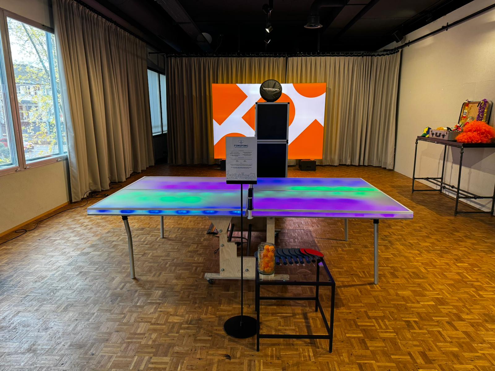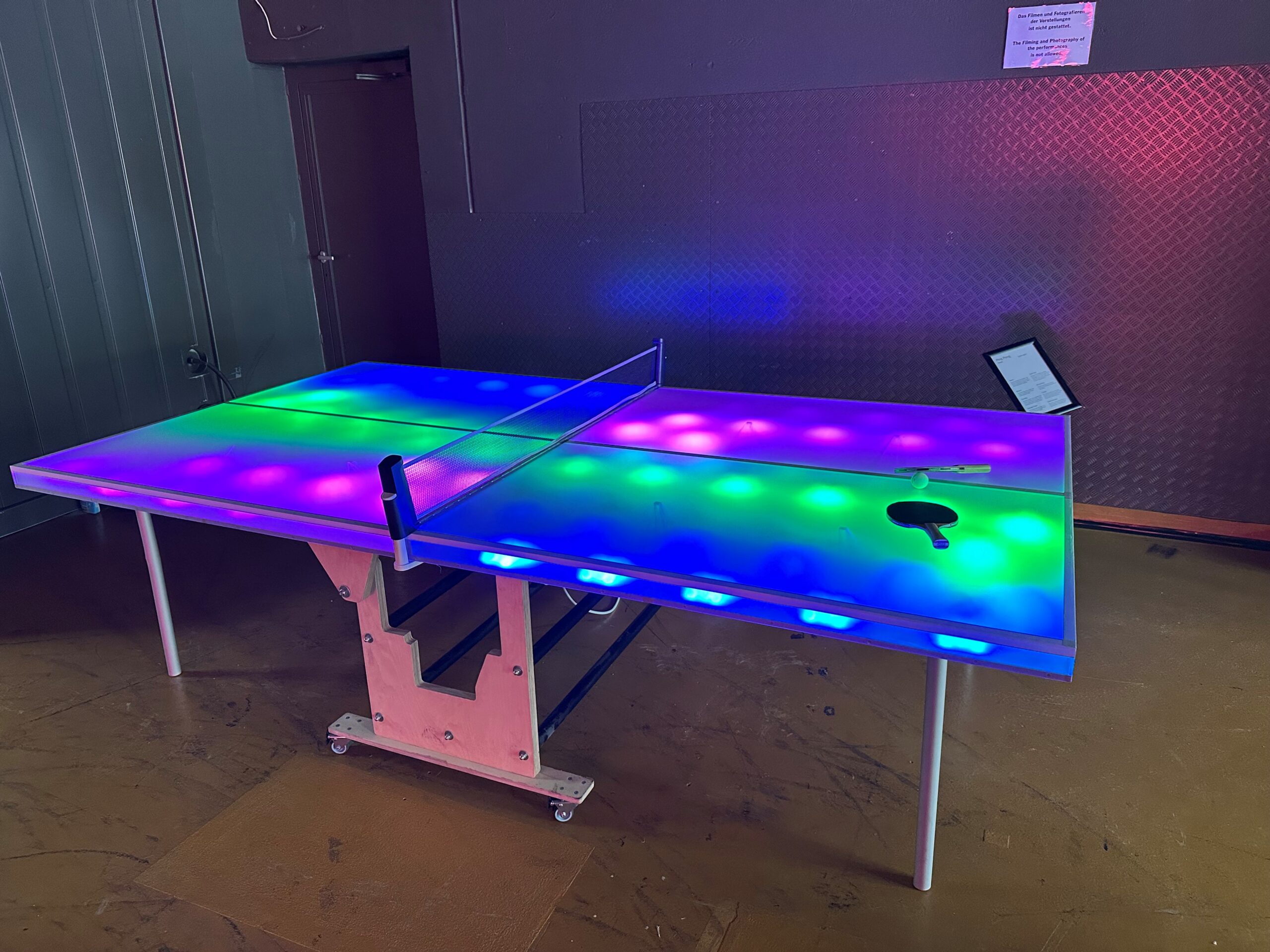 Stylische LED Tischtennisplatte für den besonderen Auftritt. Für 80s revival Party und Neon Events mit WOW Effekt.