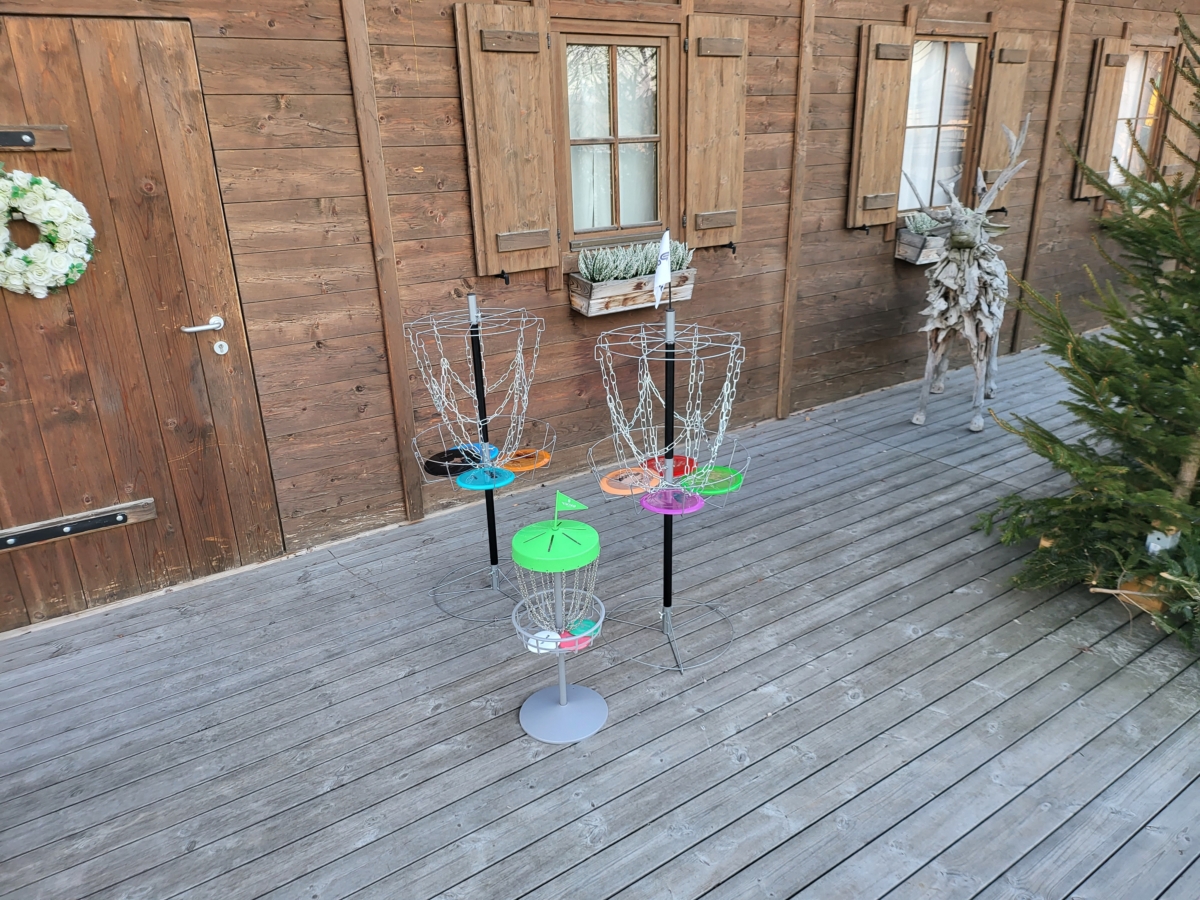 Lieferumfang: 10 x Frisbee, 2 x Ständer als Fangkorb.