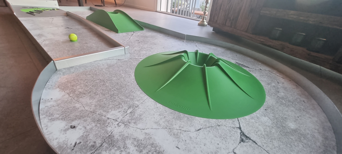 Es war immer schon etwas teurer, einen besonderen Geschmack zu haben. Werbespiele haben einen doppelten Nutzen. Nehmen Sie beispielsweise Minigolf: Das macht Spass und lässt Ihre Kunden die Werbeaussage permanent lesen. Diese Bahn hat trotz der vielen Hindernisse und einer tollen auffälligen Optik nur einen geringen Platzbedarf. Ideal geeignet für einen Messestand, im Wohnzimmer und für Standpromotionen.