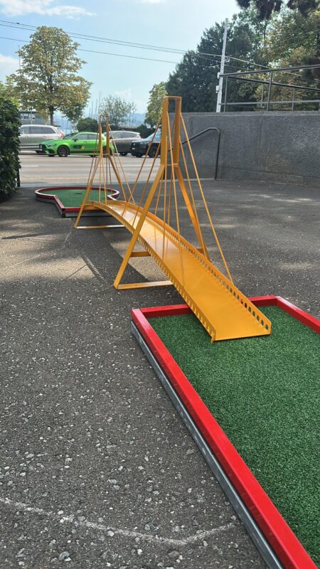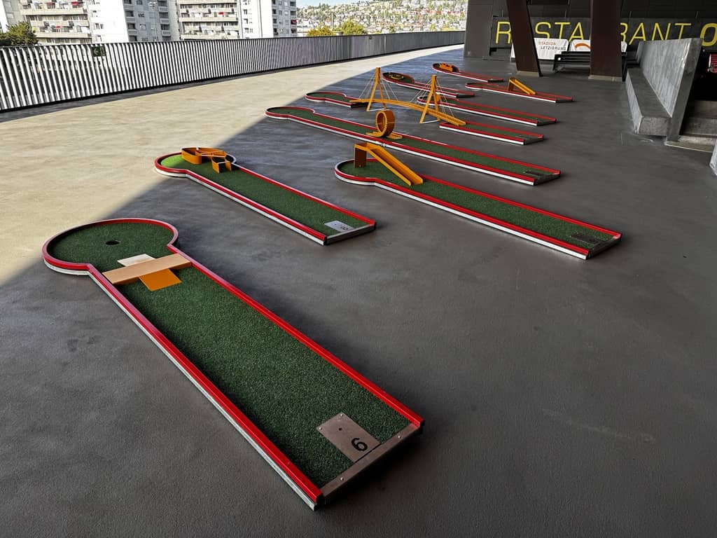 Diese professionelle Minigolfbahn besteht aus bis zu 7 grossen Bahnen mit 330 cm Länge und bis zu 4 Bahnen mit 580 cm Länge.