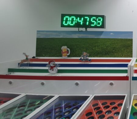 Durch den einfachen Austausch der Spielfiguren kann das Jahrmarkt-Pferderennen auch als Kamel-, Schneemann- oder Autorennen genutzt werden. Auf Wunsch fertigen wir auch Aufsätze mit Ihrem Logo oder Ihrem Produkt, die dann vor den Augen der Spieler und Zuschauer Richtung Ziel „galoppieren“.