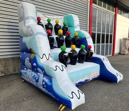Ein einfacher, aber optisch wirkungsvoller Spieleklassiker. Ringwerfen mit Seelöwen Sujet. Mit den Ringen auf die verschiedenen Bälle werfen welche doie Seelöwen balancieren. Je nach Farbe gibt es entsprechende Punkte.
