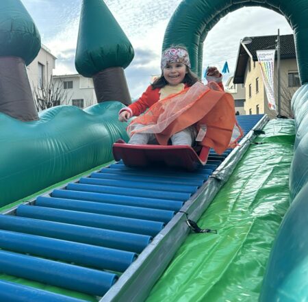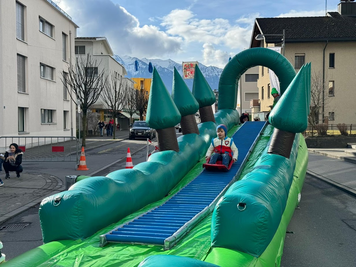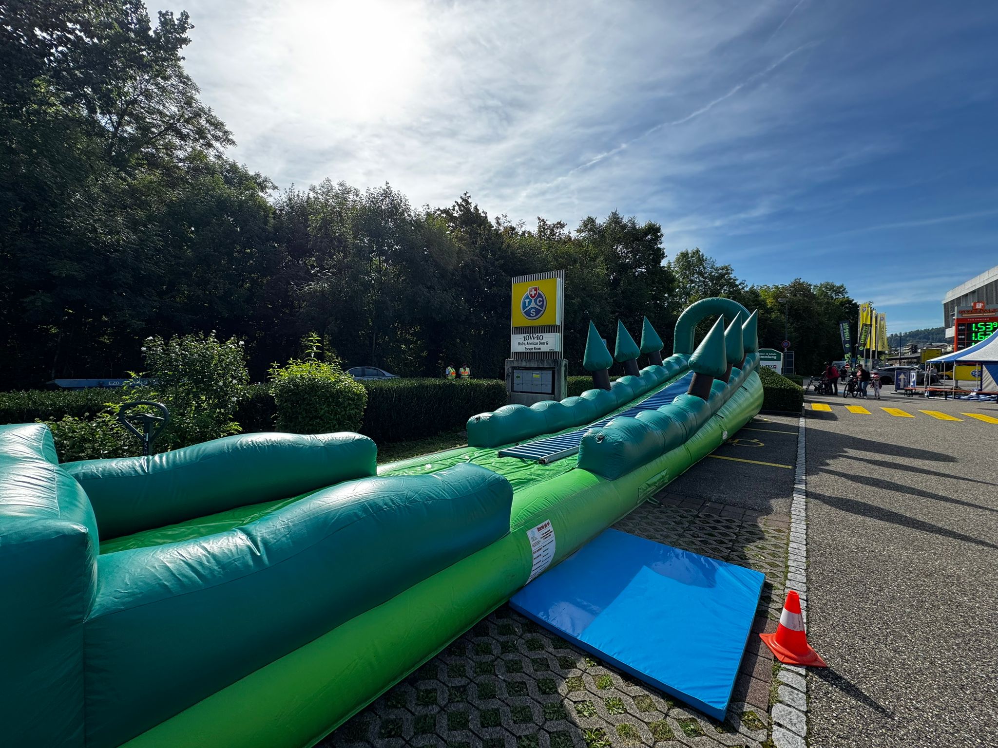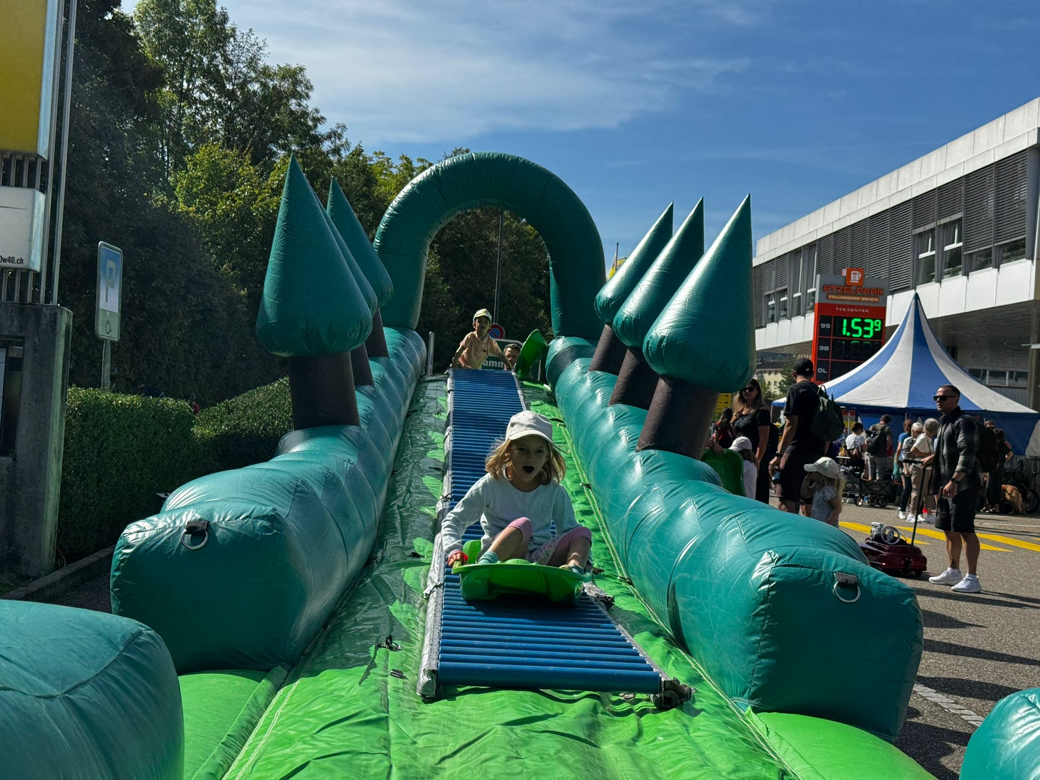 Rodeln ganz ohne Berge und Schnee! Unsere riesige aufblasbare Rollenrutsche bietet zu jeder Jahreszeit puren Rodelspass. Auf dem Gipfel des Berges erwartet die Kinder eine rasante Abfahrt die Rollenrutsche hinunter.