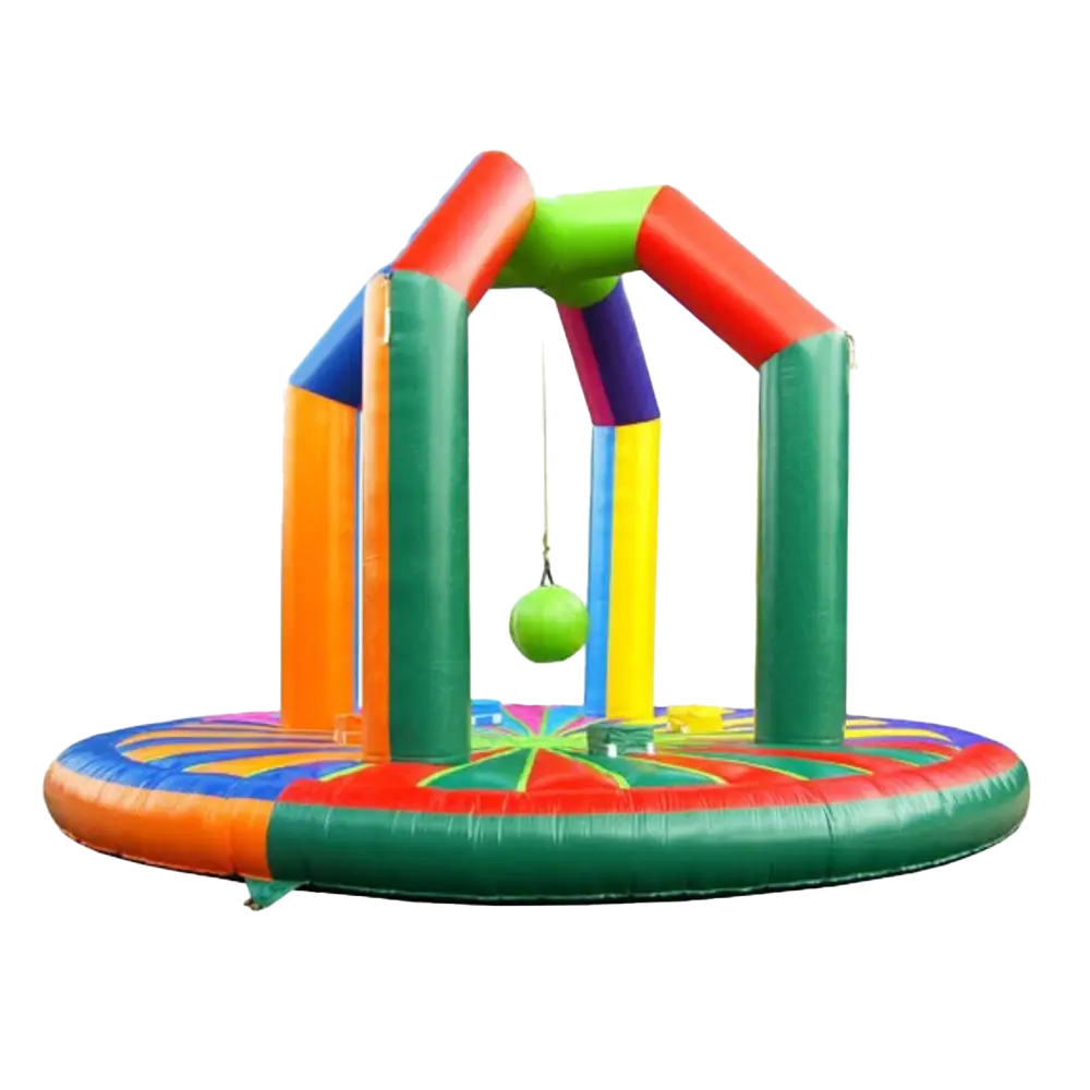Lieferumfang: Aufblasbares Gerät, Fallschutzmatten, Gebläse, Unterlegplane, Kabelrolle, Sicherungsmaterial, Auf- & Abbauanleitung.