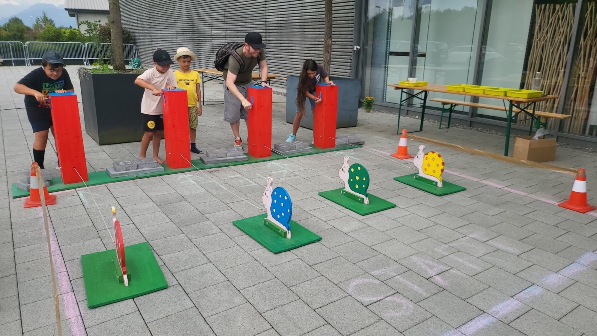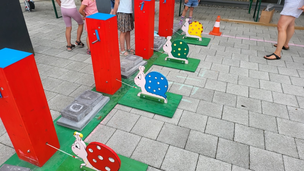 Mieten Sie unser lustiges Geschicklichkeitsspiel «Turbo-Schnägg» – das lustige Schneckenrennen-Spiel, bei dem die Kinder eine Kurbel betätigen müssen, um die Schnecke am schnellsten ans Ziel zu bringen. Das Spiel besteht aus insgesamt 4 Spielstationen mit jeweils 4 bunten Schnecken.