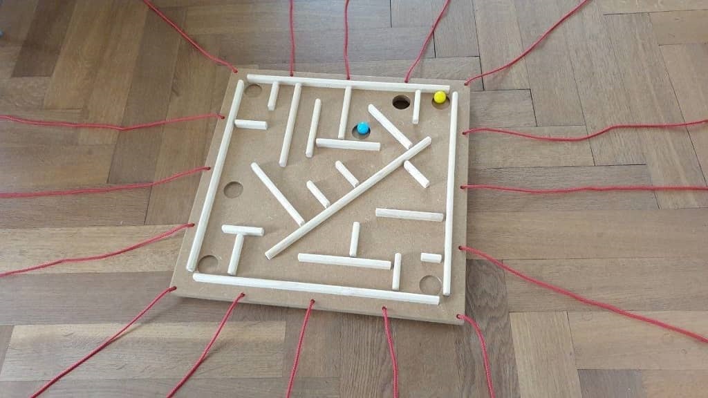 Ob zu zweit oder im Team bis 16 Personen, die Aufgabe ist immer gleich schwierig. Die Kugeln, die individuell an einen Startpunkt gelegt werden, müssen zum vorher vereinbarten Zielpunkten gerollt werden.