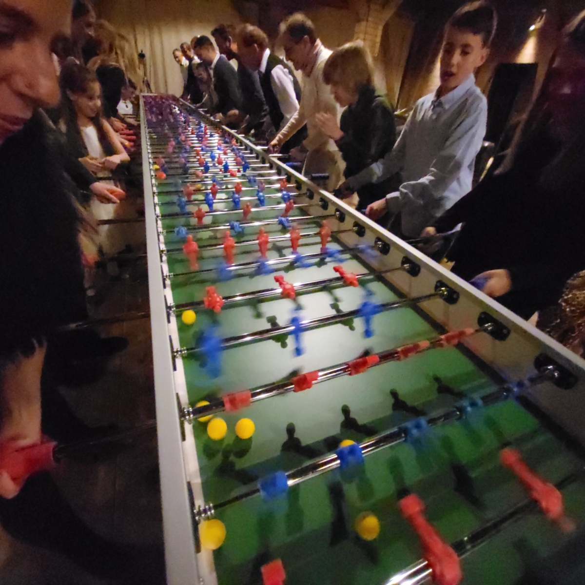 Unabhängig davon, was für eine Veranstaltung Sie planen, bieten Sie Ihren Gästen mit dem Tischfussball für 54 Personen eine Attraktion im Giga-Format, bei der jeder gerne mitmacht. Unser riesiger Töggelikasten ist wetterfest und kann problemlos bei Outdoor-Events genutzt werden. Bis zu vier Exemplare stehen Ihnen bei Arena der Wunder zur Miete zur Verfügung.