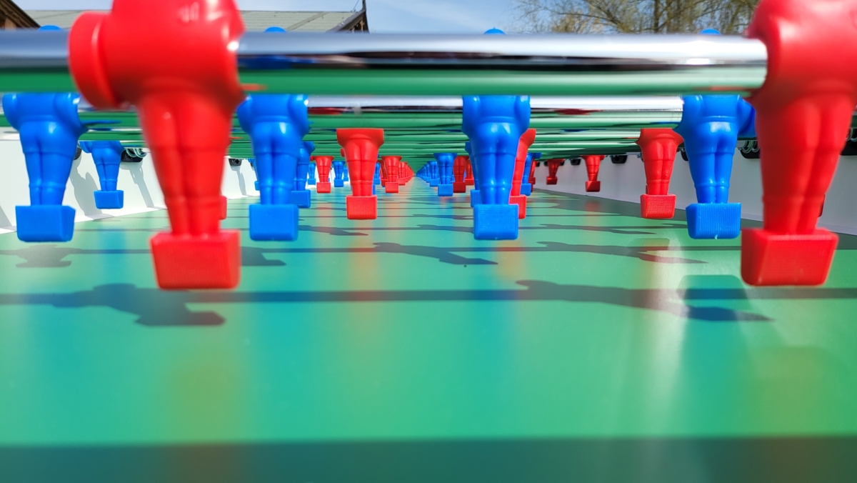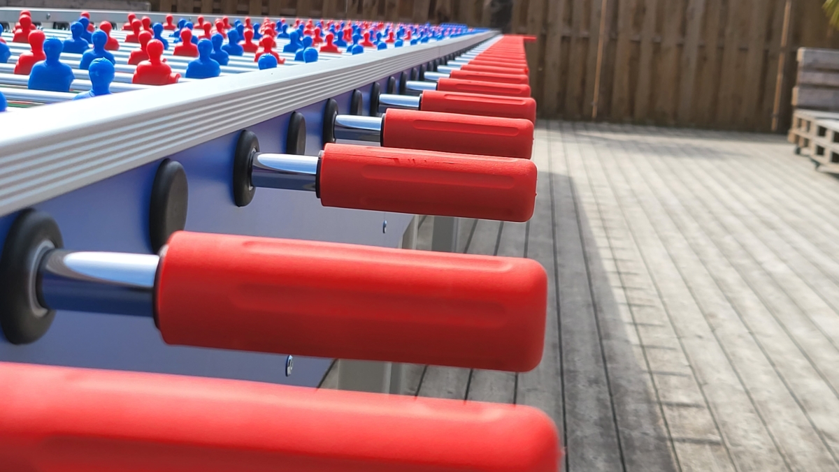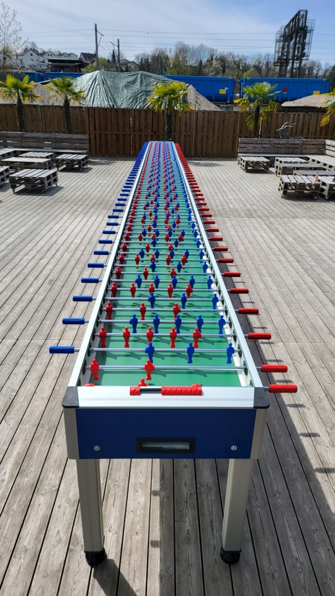 Hier macht Tischfussball gleich noch mehr Spass! Denn anders als beim klassischen Fussballtisch für maximal vier Personen finden hier bis zu 54 Spieler Platz. 27 Spieler gegen 27 Spieler. Gespielt wird mit etwa 20-30 Bällen.