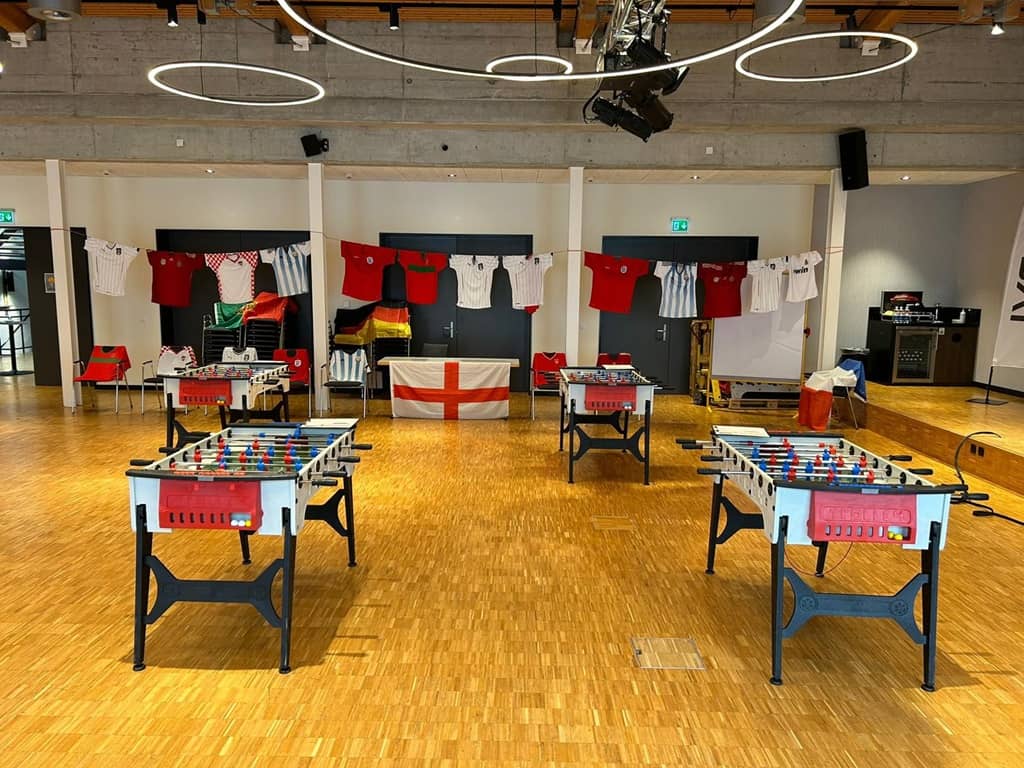 Bei Arena der Wunder können Sie bis zu 30 Fussballtische auf einmal mieten und so beispielsweise ein Turnier veranstalten, mit dem Sie Ihre Gäste begeistern bzw. neue Besucher gewinnen können. Unsere Töggelikästen für 4 Personen sind besonders robust und wetterfest und können daher auch für Outdoor-Events genutzt werden. Sie sind vollkommen problemlos in der Handhabung und lassen sich schnell auf- und abbauen.