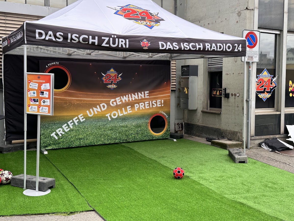 Unsere Torwand besteht aus einem Aluminiumrahmen, auf dem Dibond-Platten montiert sind. Dadurch ist sie trotz geringen Gewichts sehr robust. Wenn Sie unsere Torwand mieten, sind ein Rasenteppich und hochwertige Fussbälle im Preis inbegriffen. Auf Wunsch können Sie einen Betreuer oder Moderator in Schiedsrichter-Kleidung hinzubuchen. So können Sie mit Ihren Gästen spannende Torwandschiessen veranstalten und die treffsichersten Schützen mit tollen Preisen belohnen.