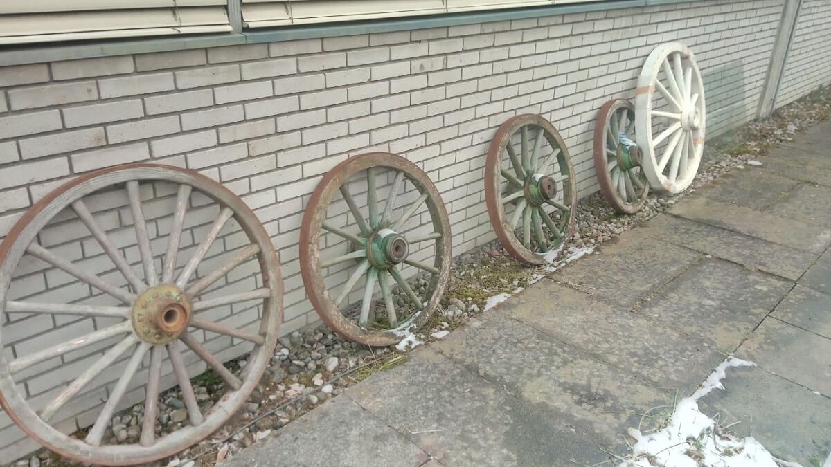 Alte rustikale Wagenräder in verschiedenen Grössen für eine perfekte Westerndekoration.
