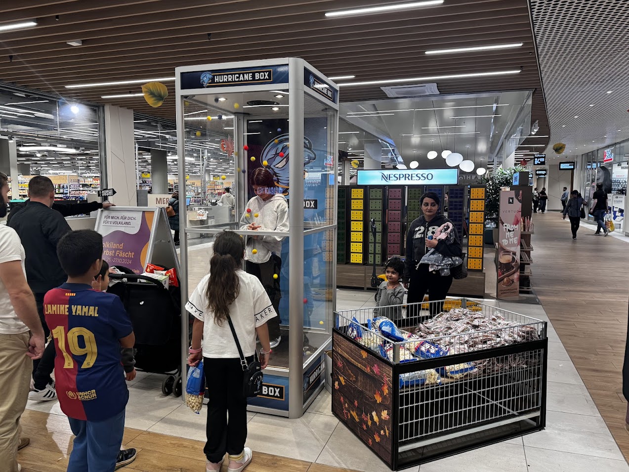 Es gilt, im Windkanal die meisten der kleinen Schaumstoffbälle, oder das eine rote Bällchen unter Hunderten zu fangen. Auf der grossen LED-Stoppuhr läuft ein Countdown, was für zusätzliche Spannung bei dieser Promotionaktion mit viel Körpereinsatz sorgt. Wir haben 7 Farben für die Schaumstoffbälle zur Auswahl. Gern branden wir die Box auch mit Ihrem Logo oder vollflächig in Ihrem Firmendesign.